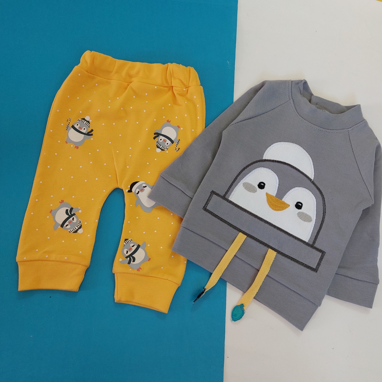 بلوز شلوار نخ پنبه پنگوئن طوسی زرد نونا
