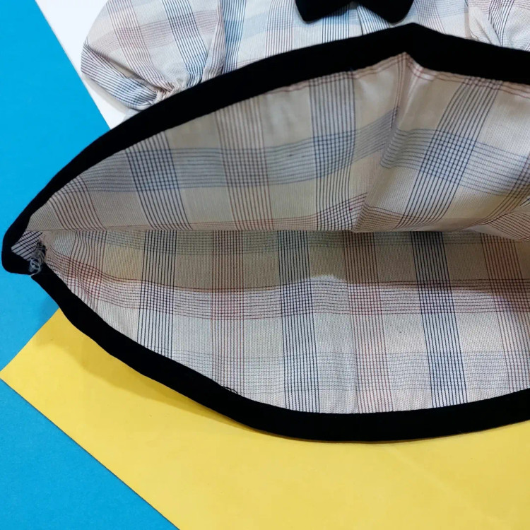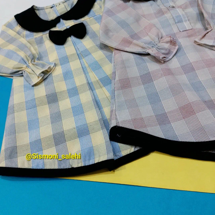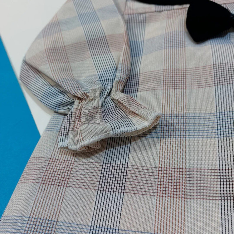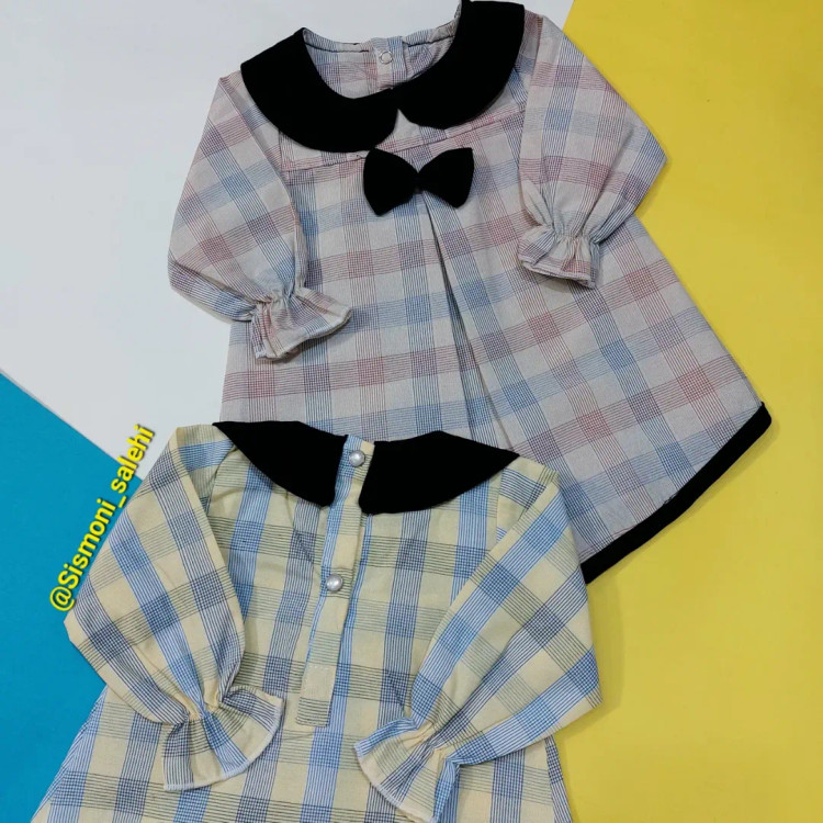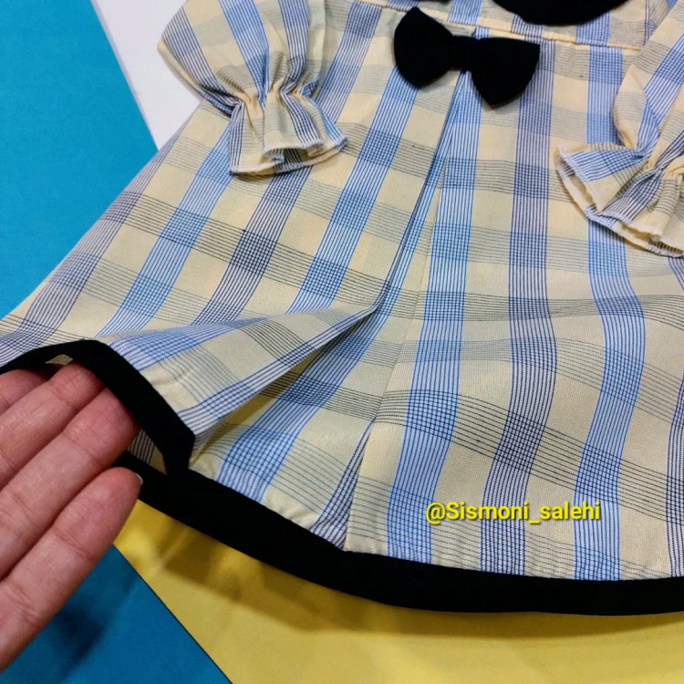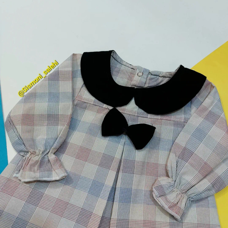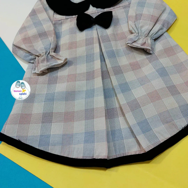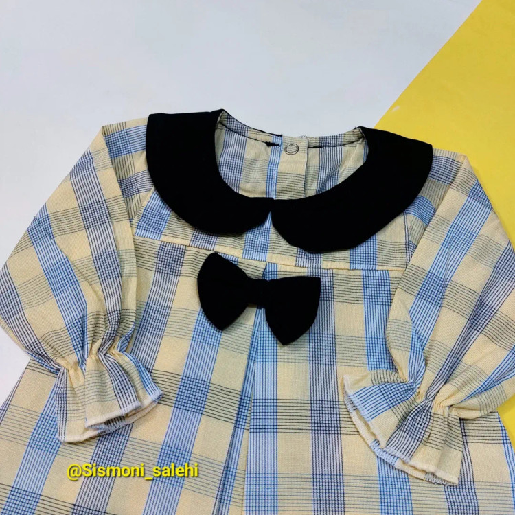 سارافون نقلی چارخونه یقه ب ب مشکی پاپیون دار