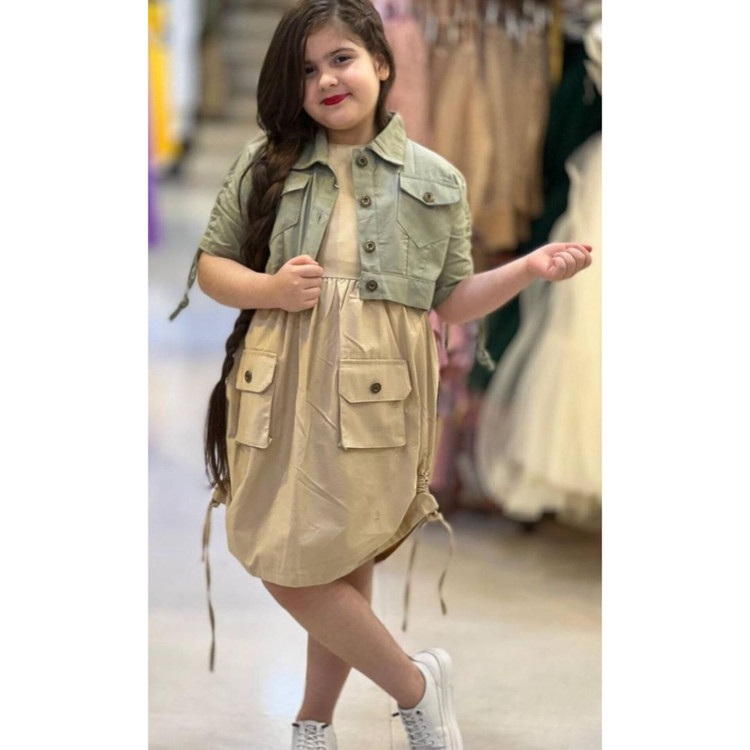 ست کت و سارافون کتان نخ بغل گت دار دخترانه