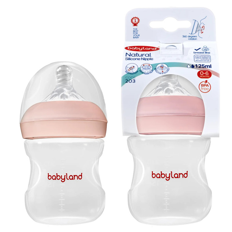 شیشه شیر طلقی نچرال 125 میل بیبی لند Babyland با طراحی شبیه سینه مادر ؛
