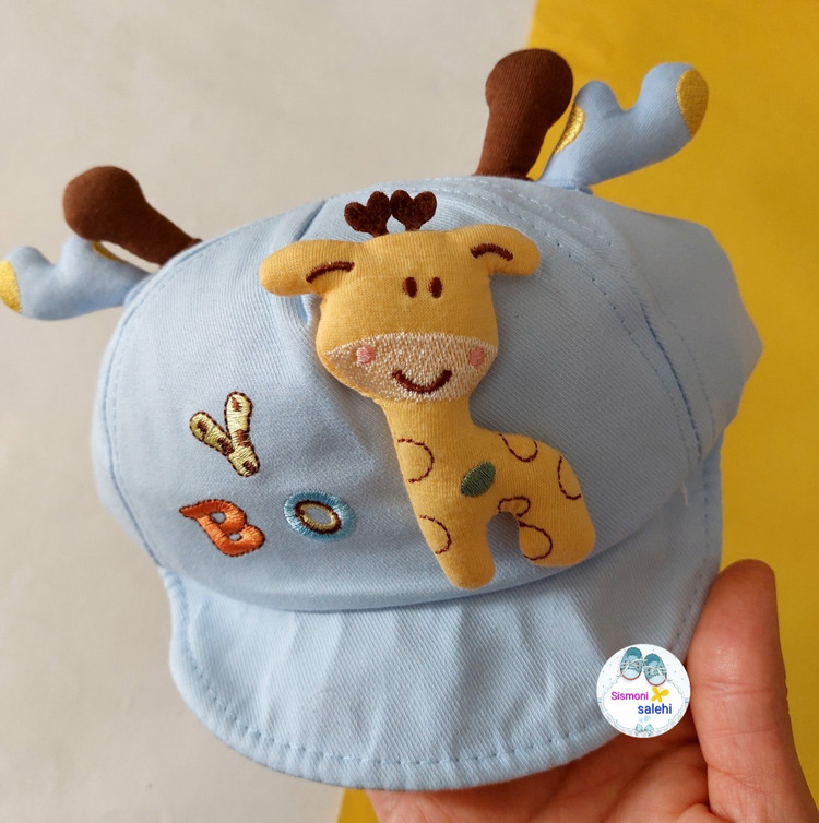 کلاه نقابدار نوزادی طرح گوزن شاخ دار پشت چسب دار