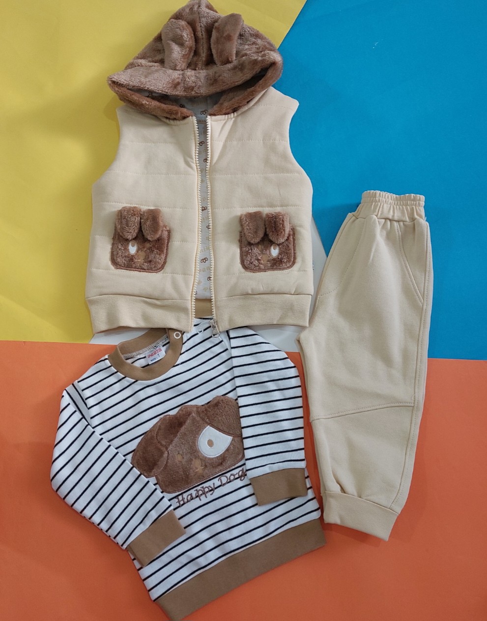 ۳ تکه پافر دار به همراه بلوز و شلوار دورس ۳ نخ پانیک طرح سگ