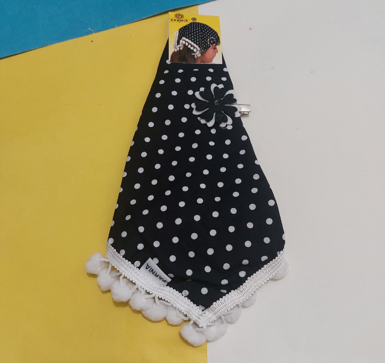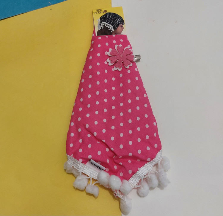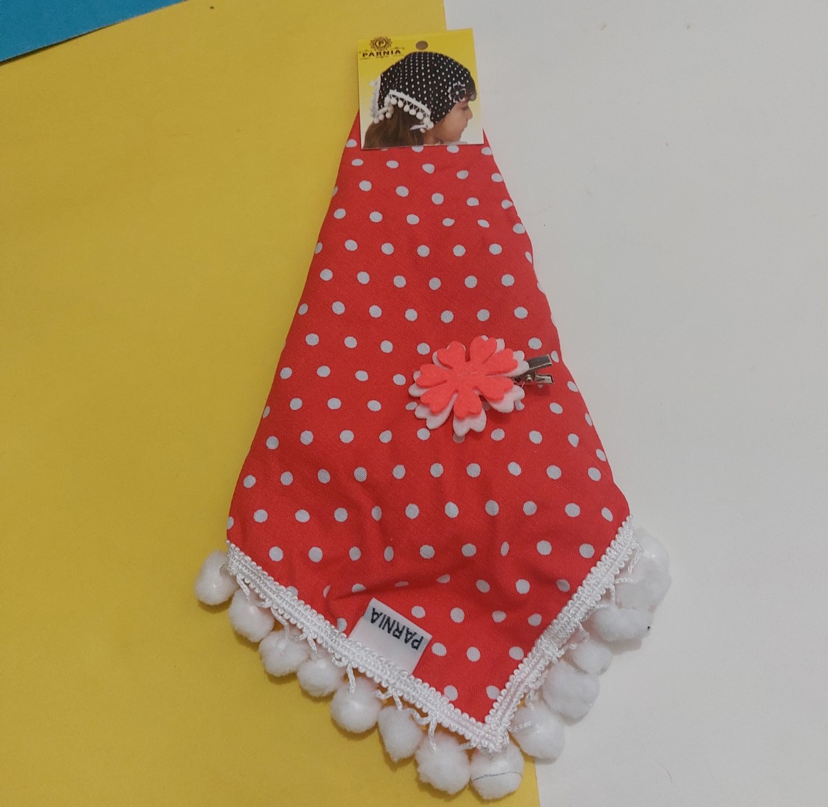 دستمال سر نوزادی خال خالی پوم دار به همراه گل سر