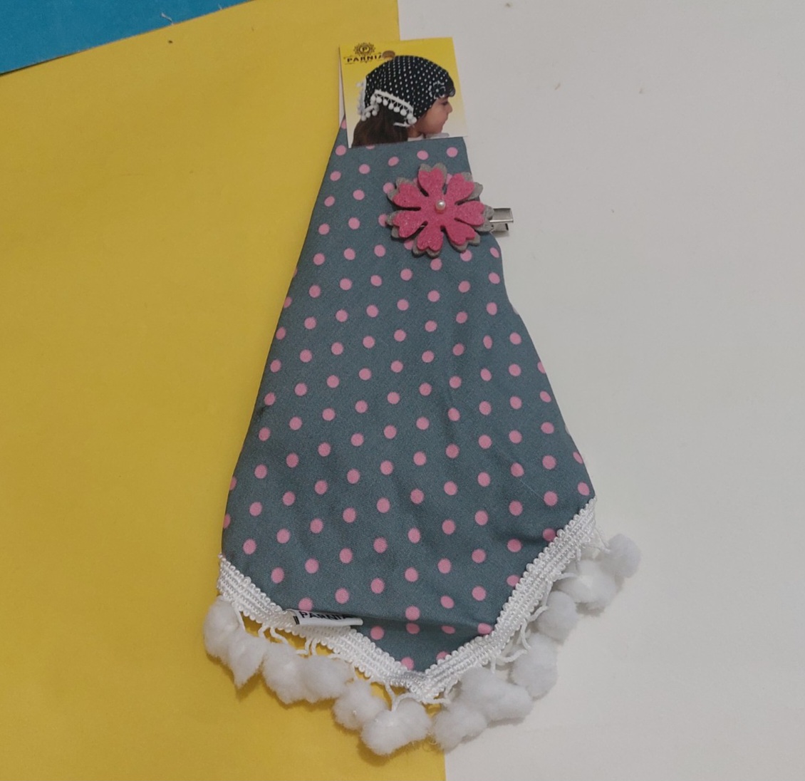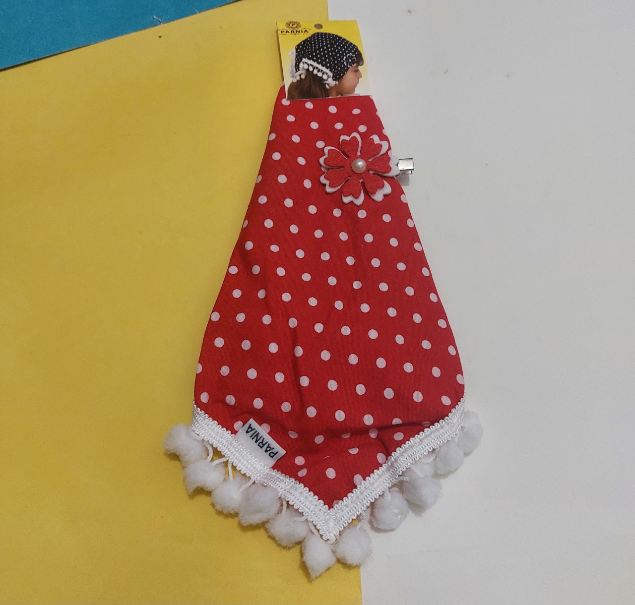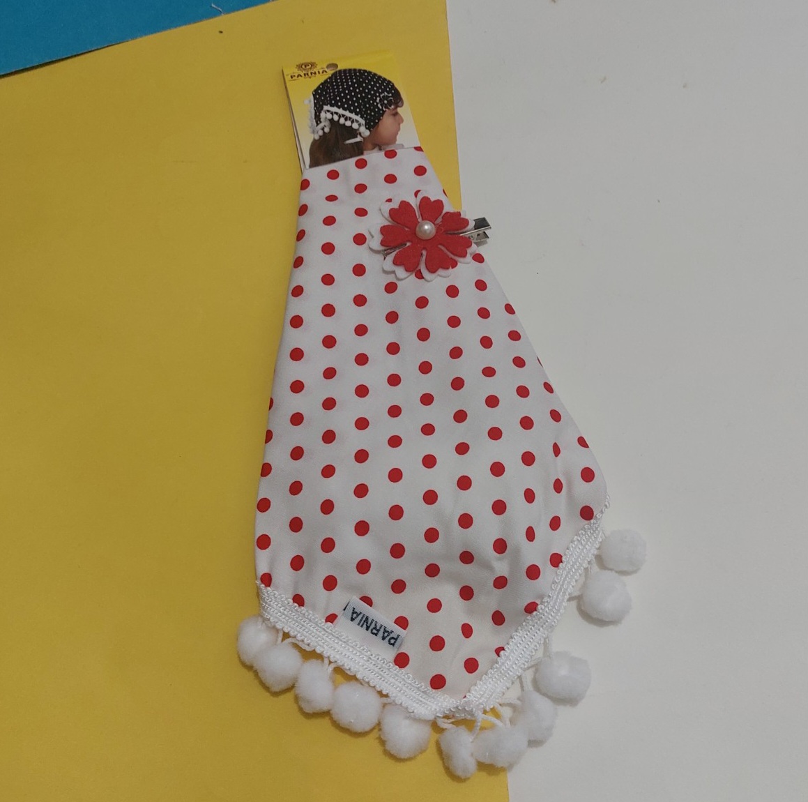 دستمال سر نوزادی خال خالی پوم دار به همراه گل سر