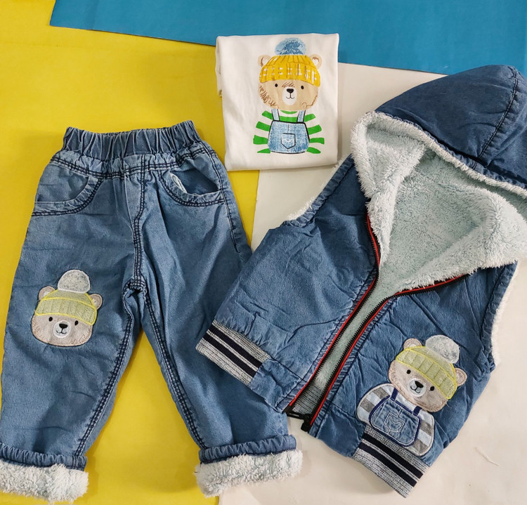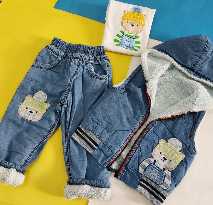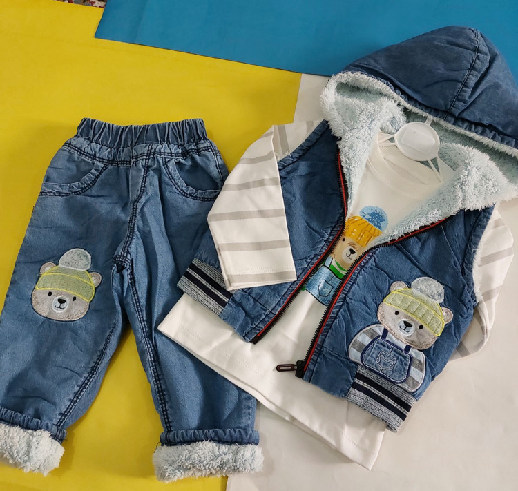 ست 3 تکه پافر و شلوار جین داخل پشمی بیبی نیدز