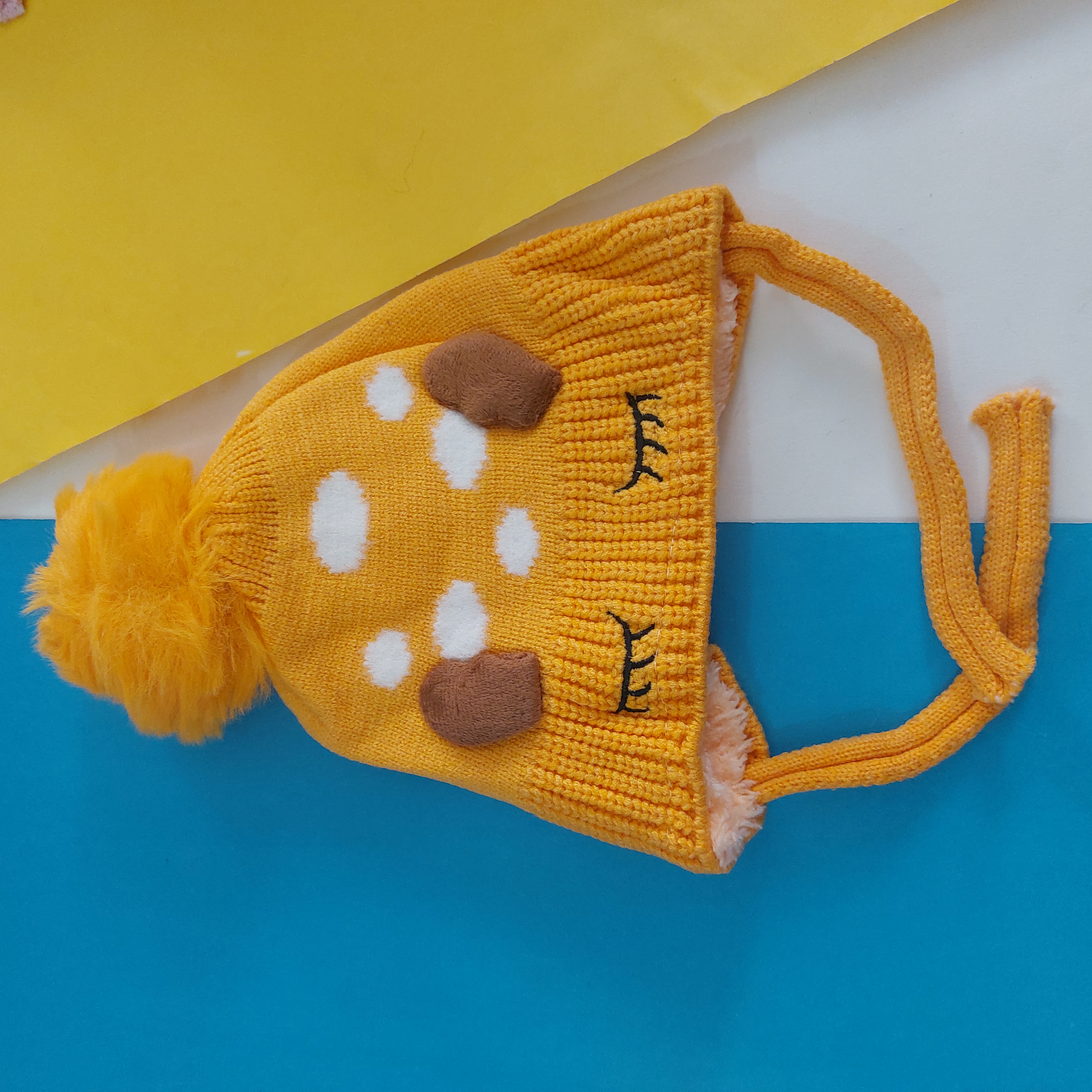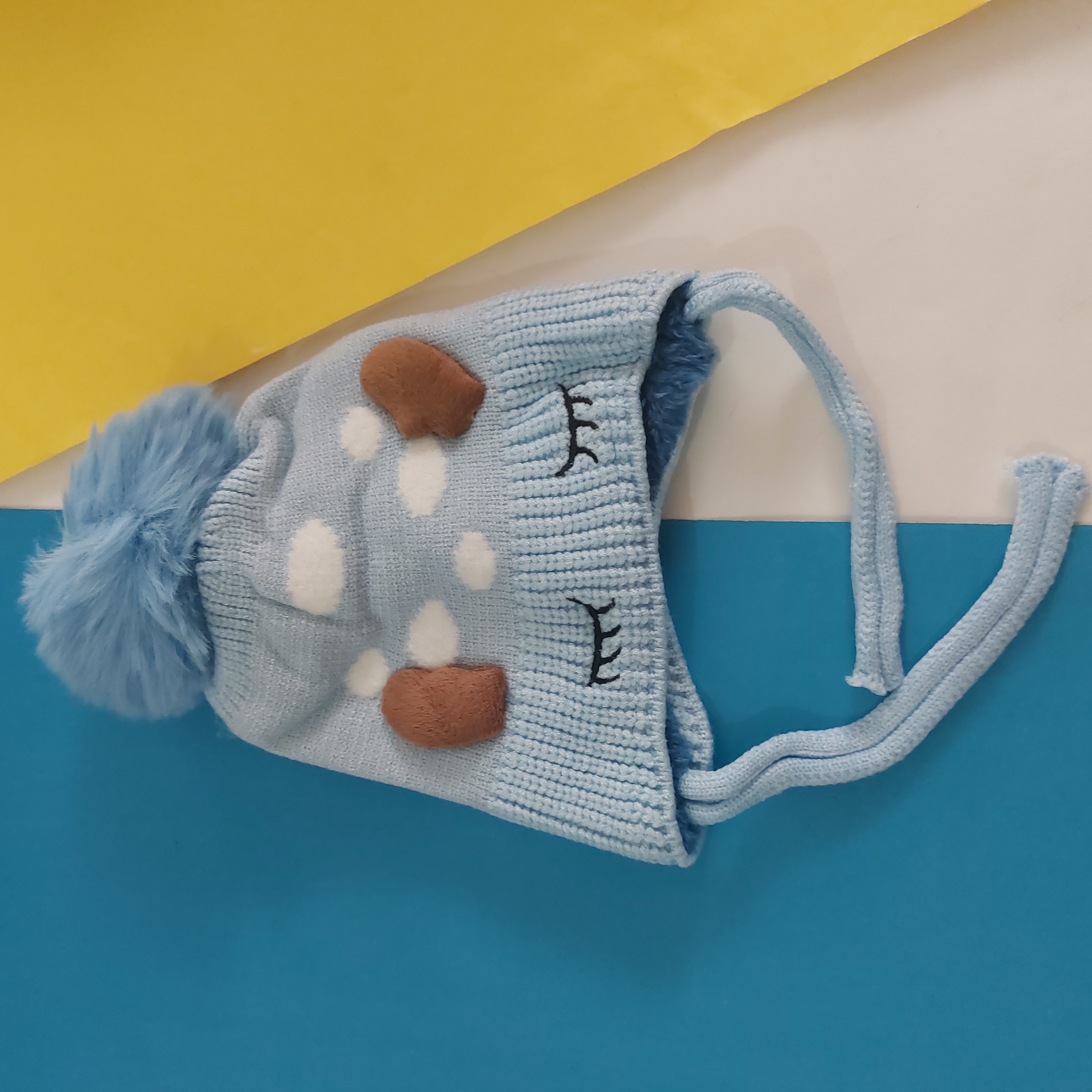 کلاه بافت داخل پشمی طرح چشم و ابرو