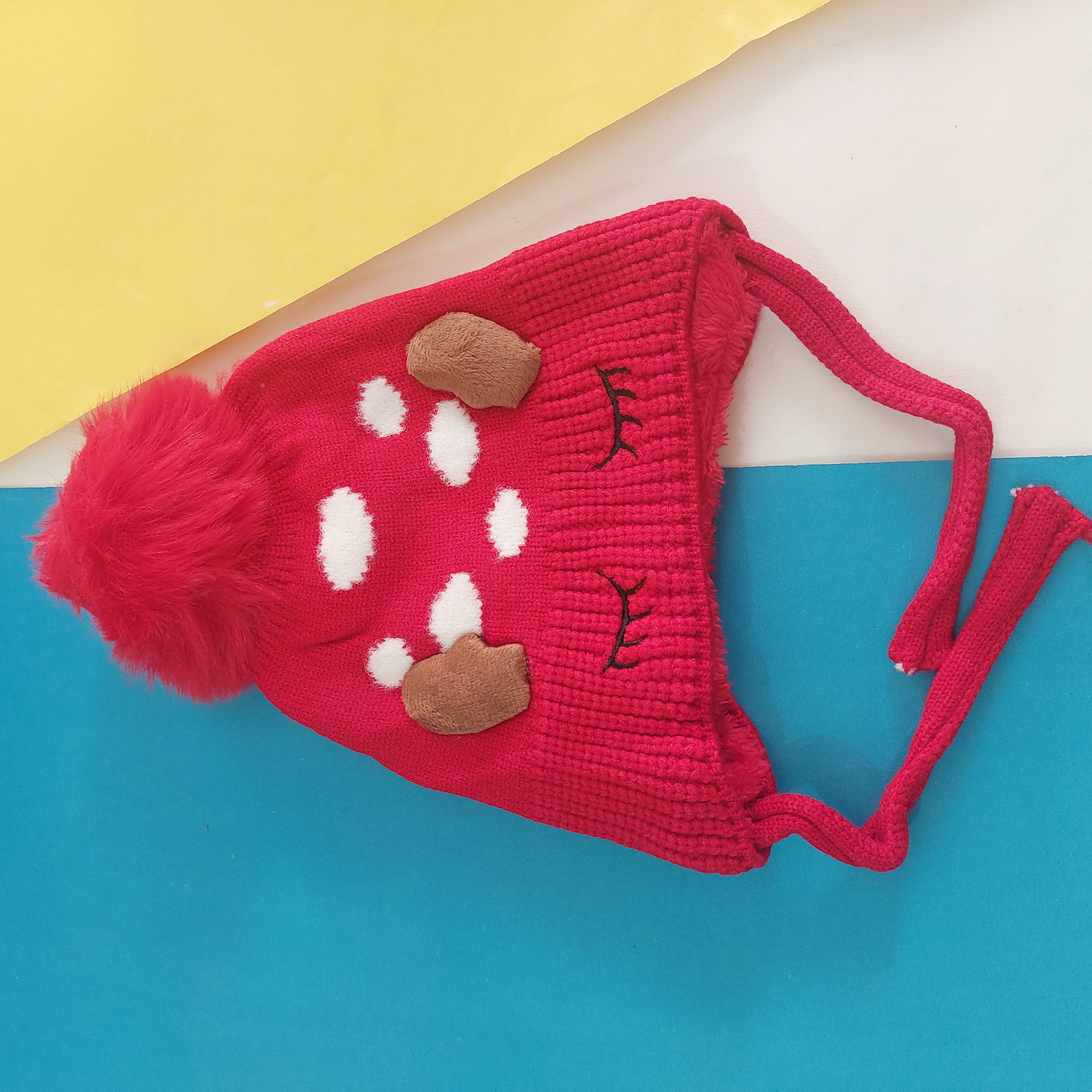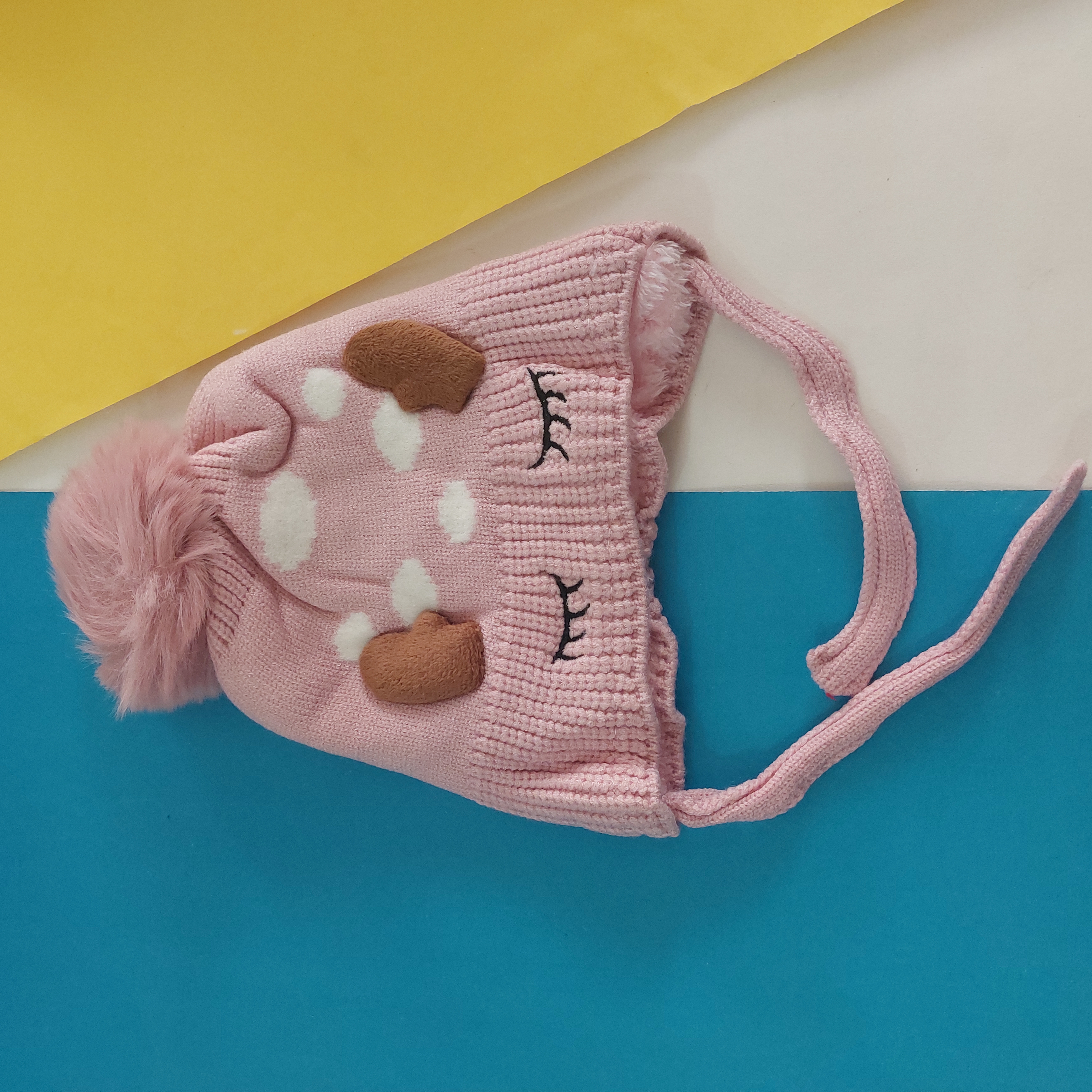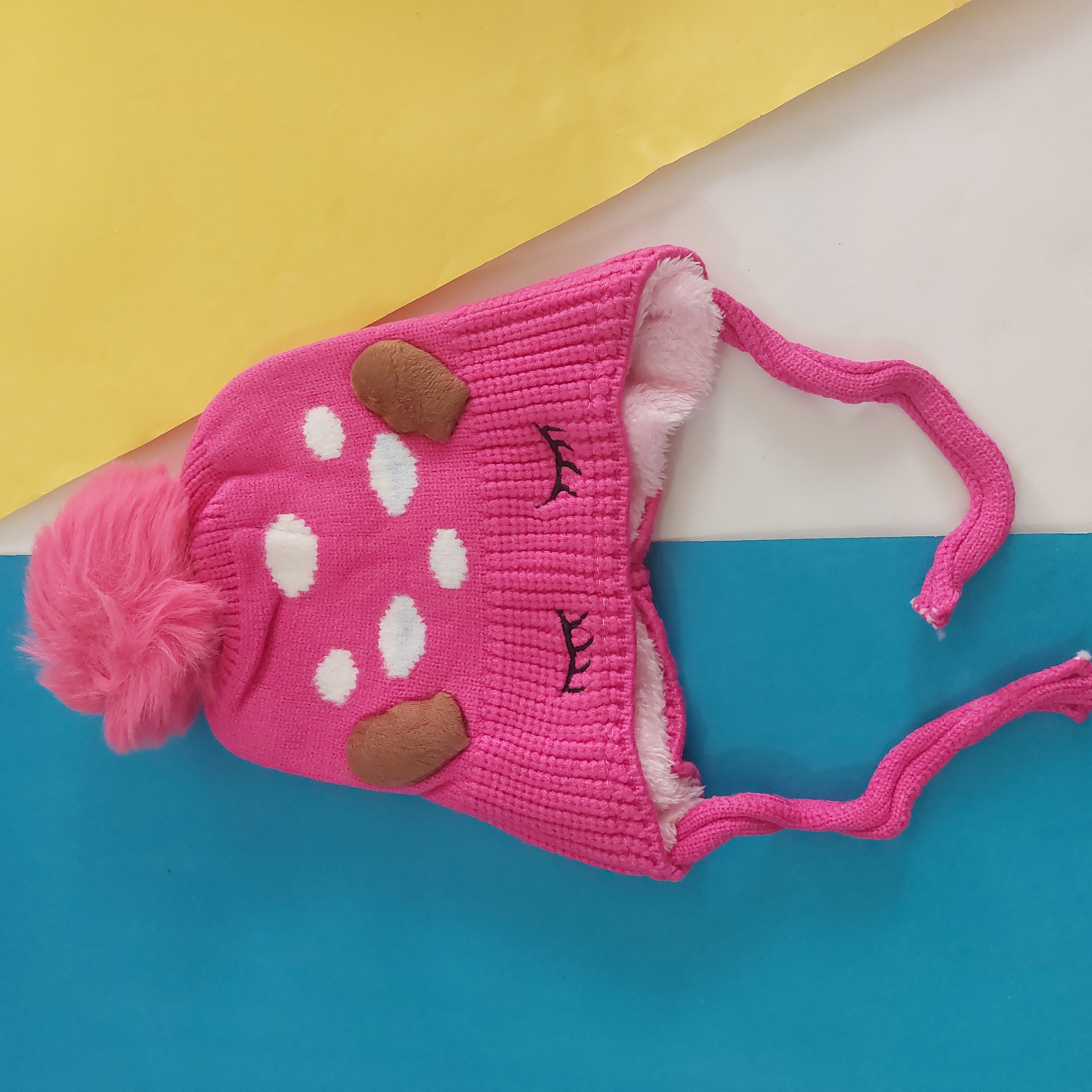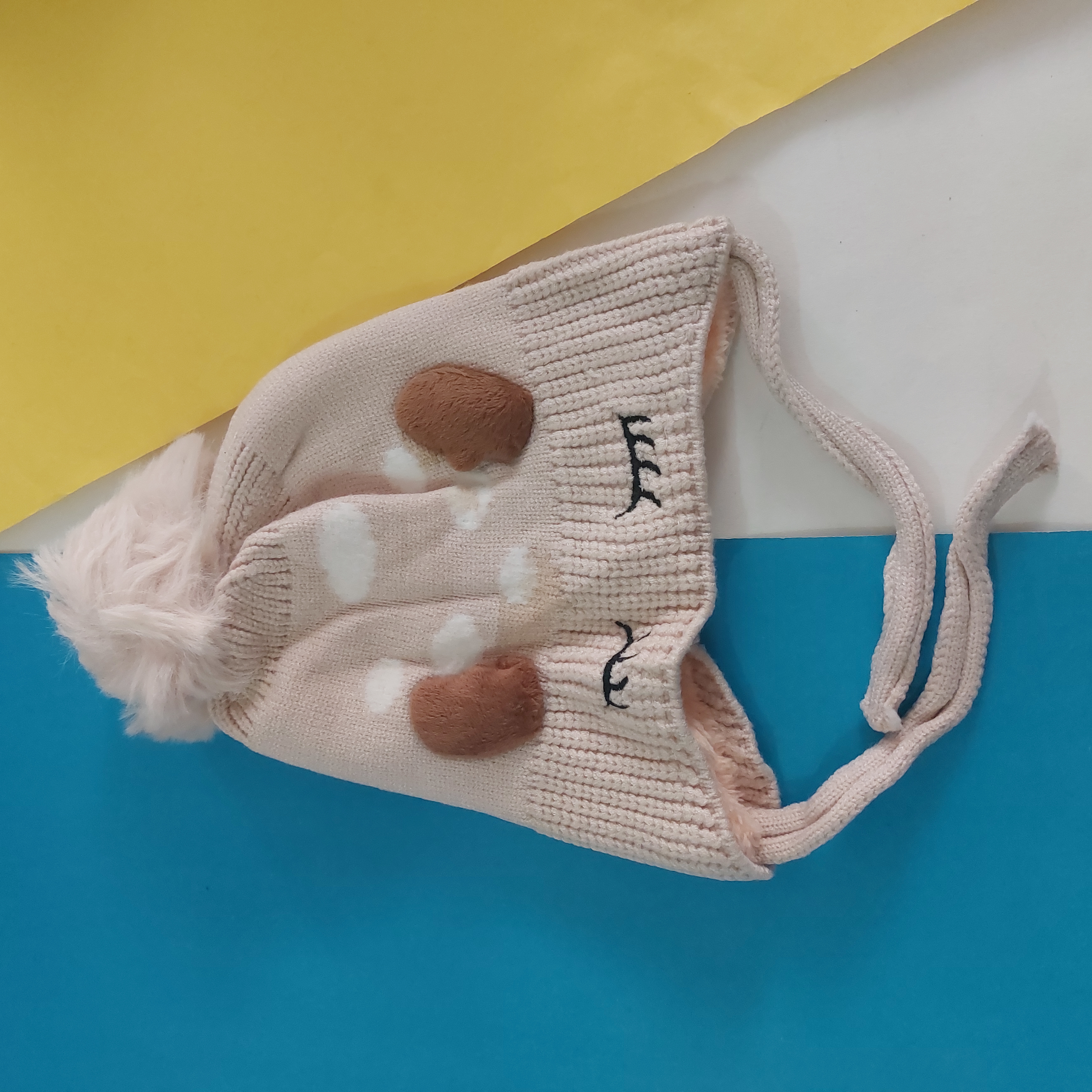 کلاه بافت بند دار تو پشمی گرم و نرم وارداتی طرح چشم و ابرو