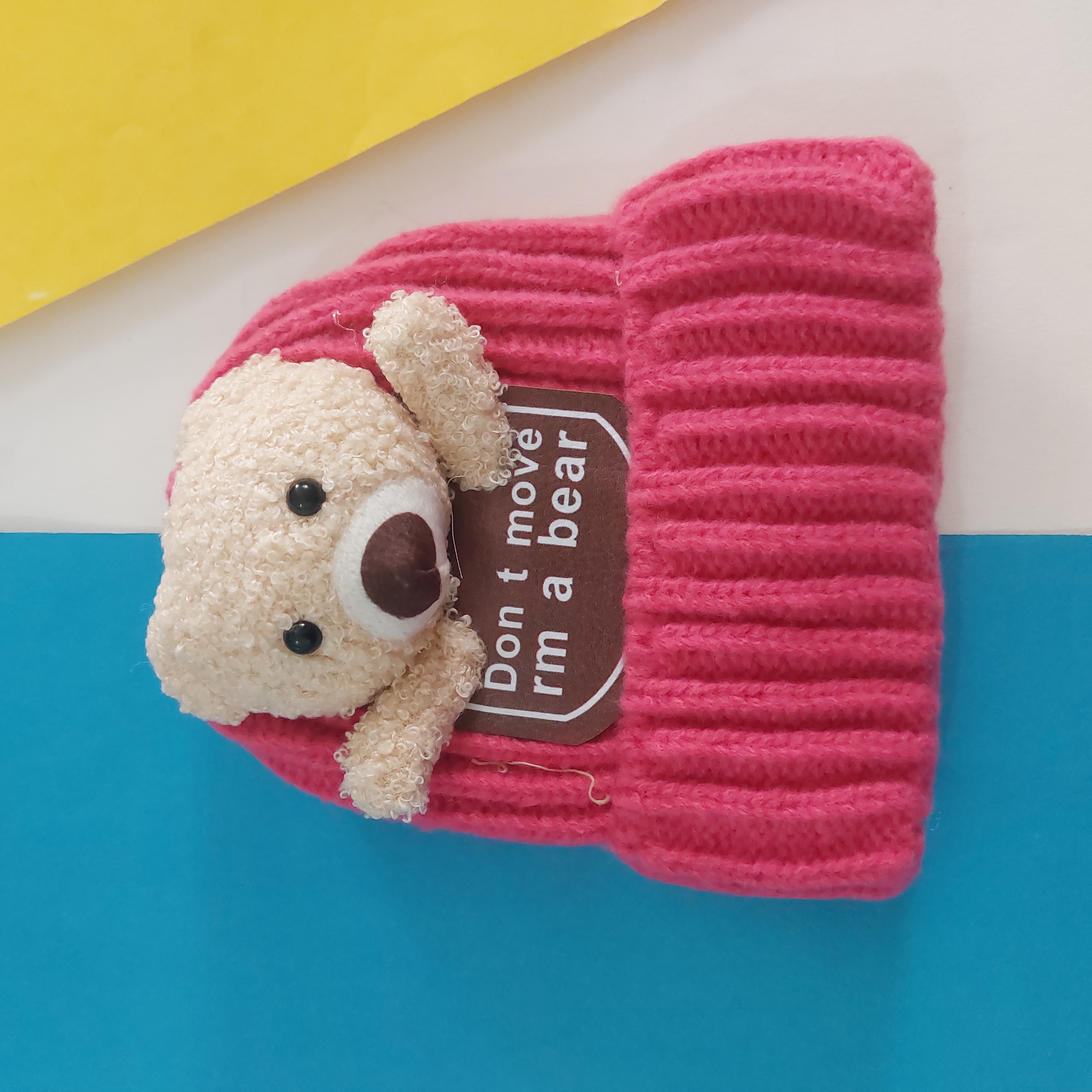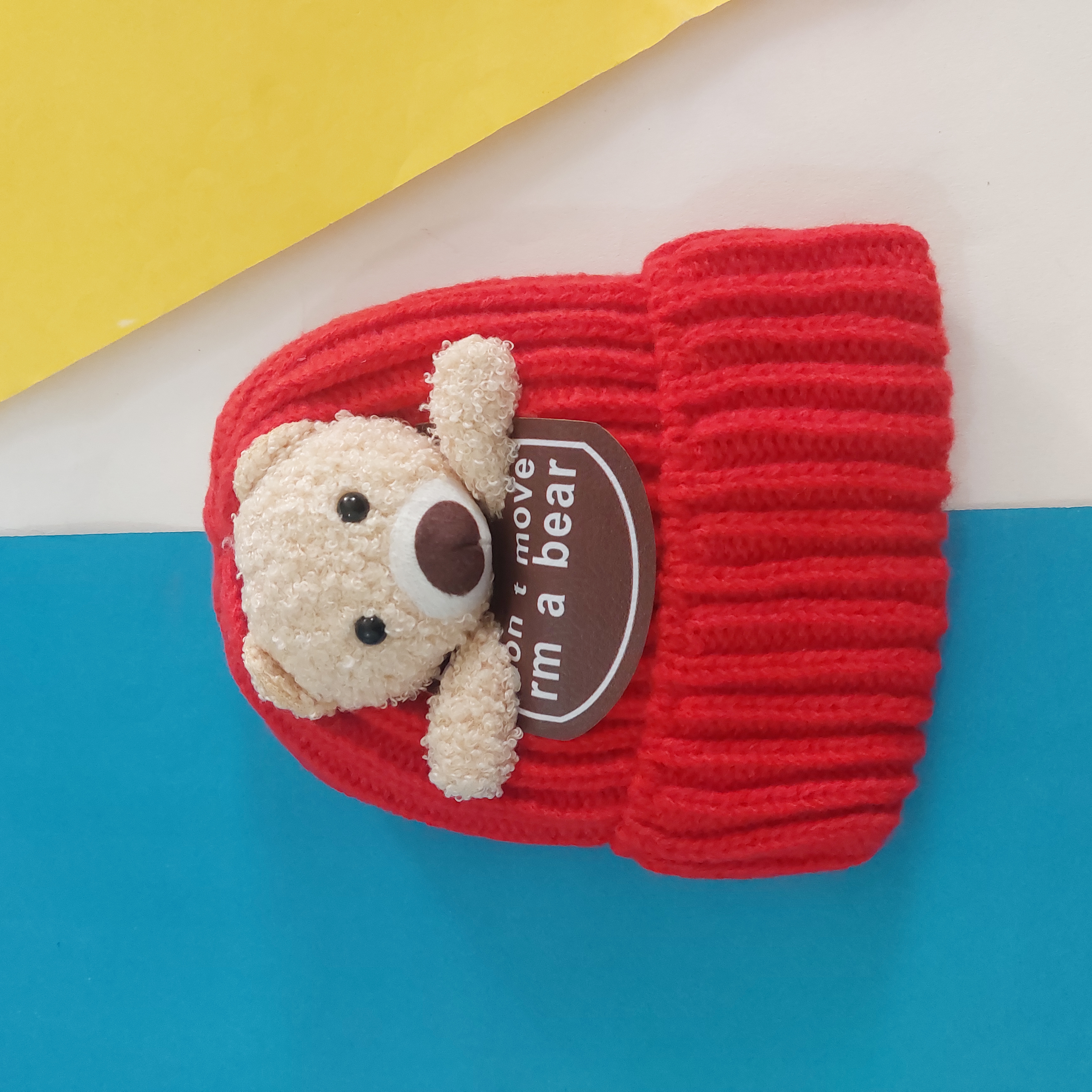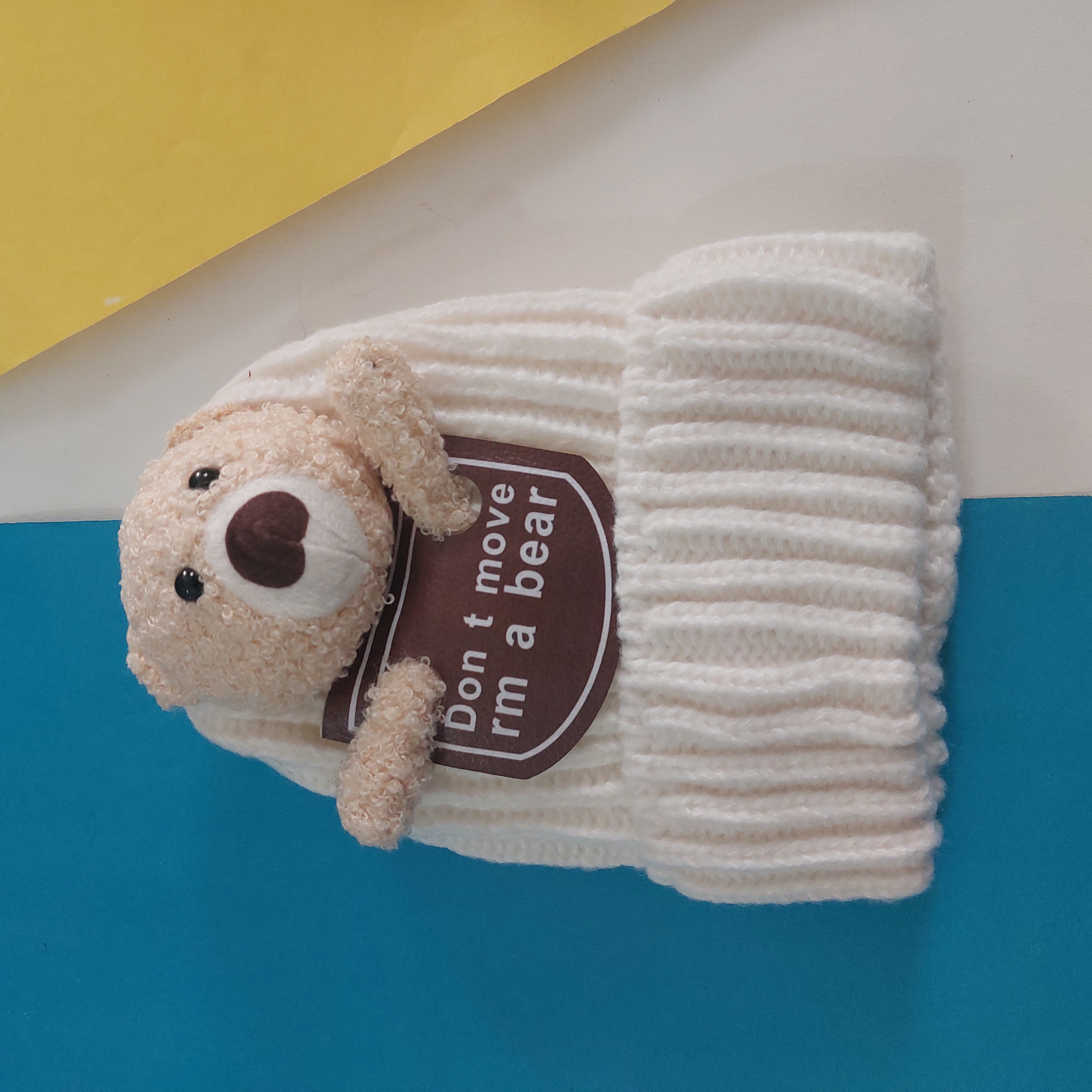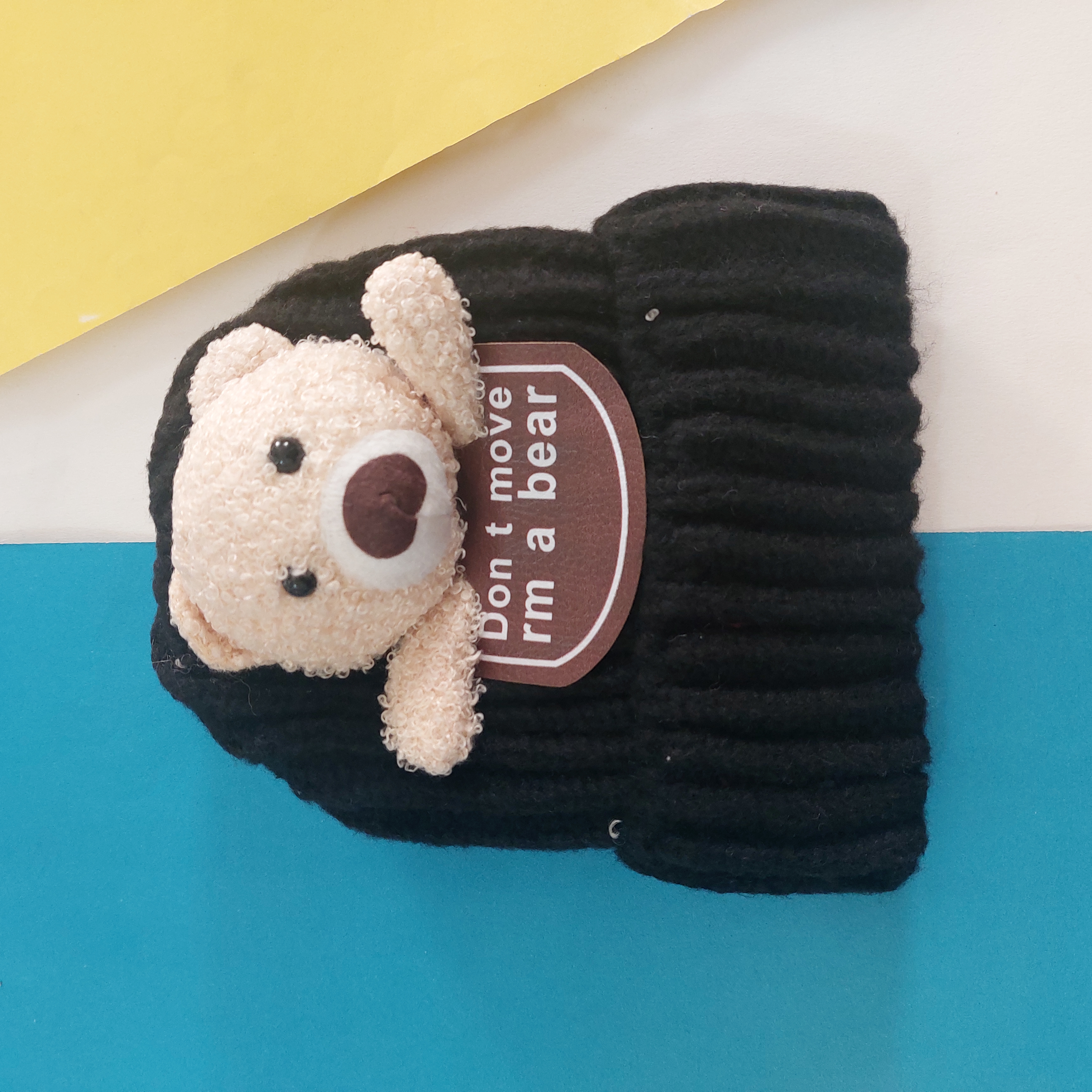 کلاه بافت تو پشمی گرم و نرم عروسک برجسته تدی