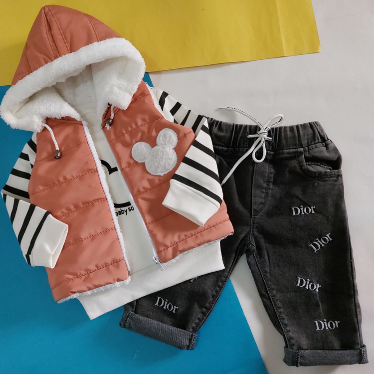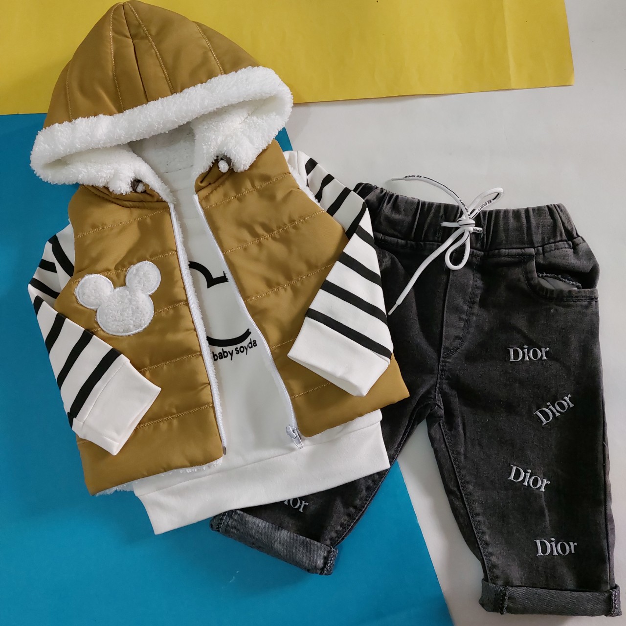 ست ۳ تکه پافر و بلوز و شلوار جین بچگانه sevda