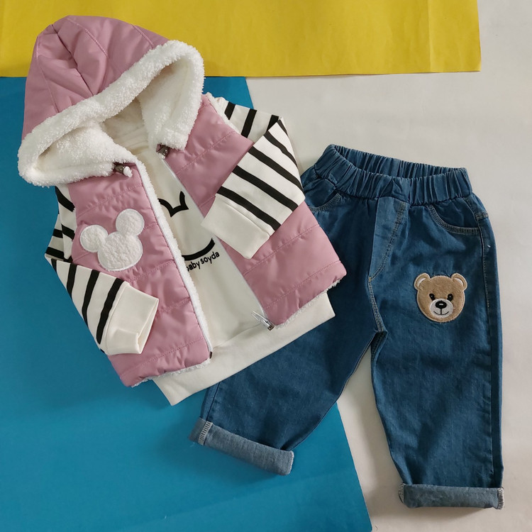 🔴ست ۳ تکه پافر و بلوز و شلوار جین