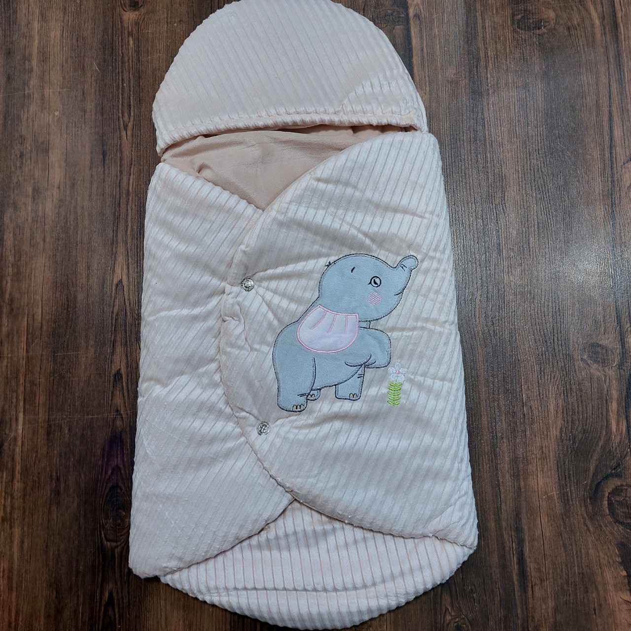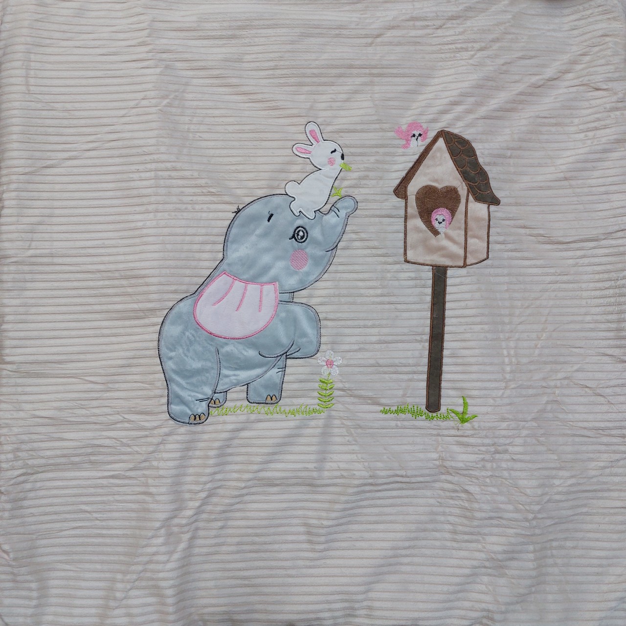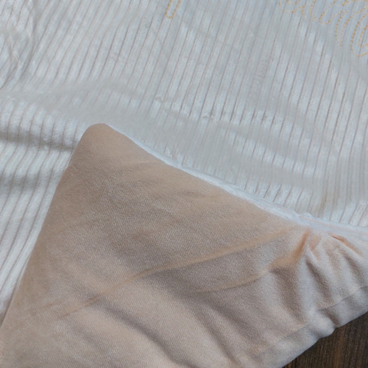 🔴سرویس خواب ۴ تکه نوزاد جنس دو رو مخمل راه راه نرم و لطیف گلدوزی شده شامل : لحاف 104 * 88 سانت تشک 79 * 53 سانت بالش 39 * 29 سانت قنداق سوئیسی 77 * 39 سانت