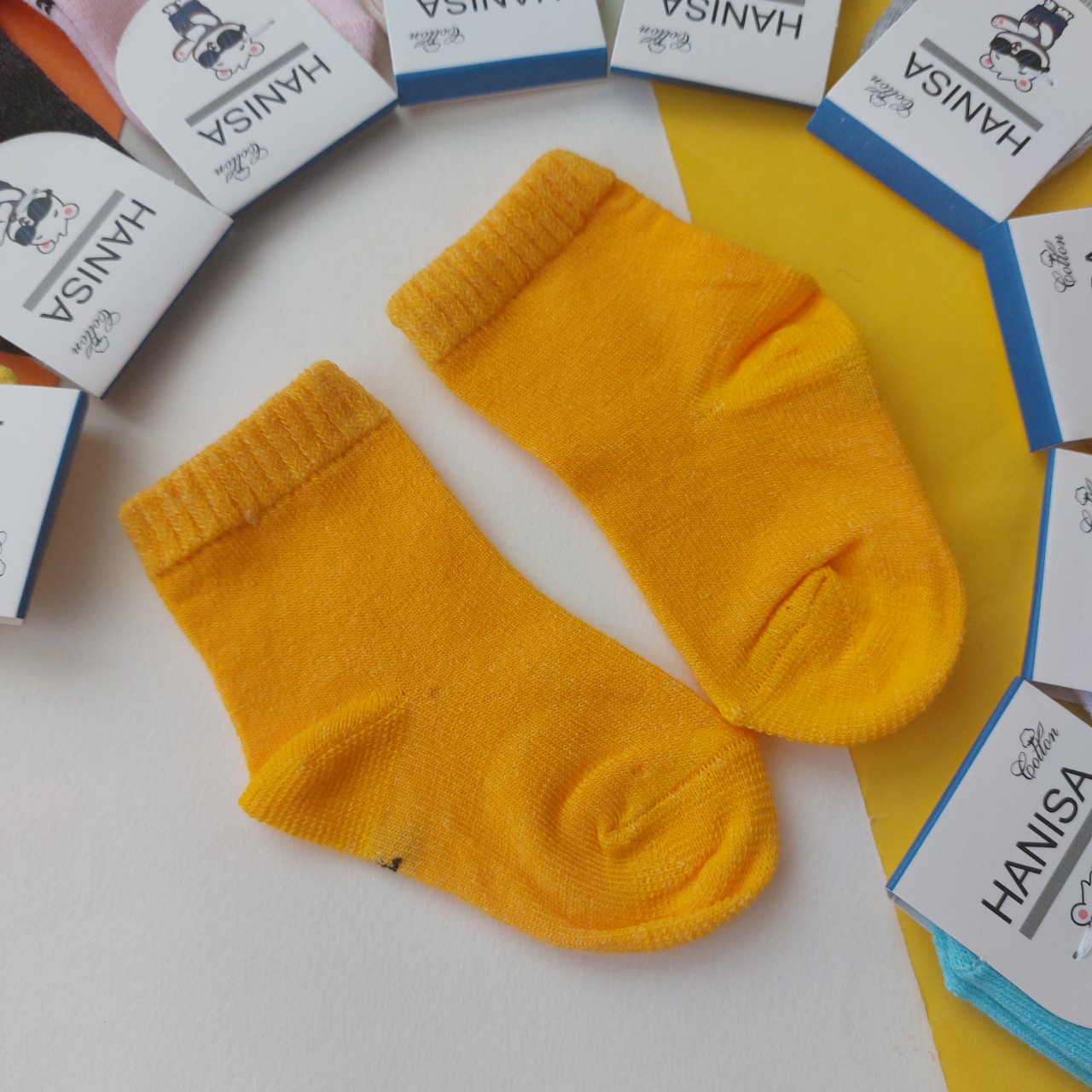 جوراب رنگی نقلی نخ پنبه نوزادی هانیسا سایز یک