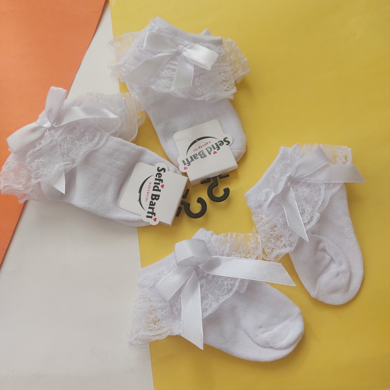 جوراب سفید دورتور مجلسی بچگانه سفید برفی در ۳ سایز