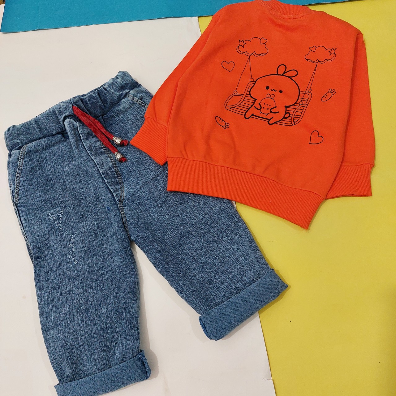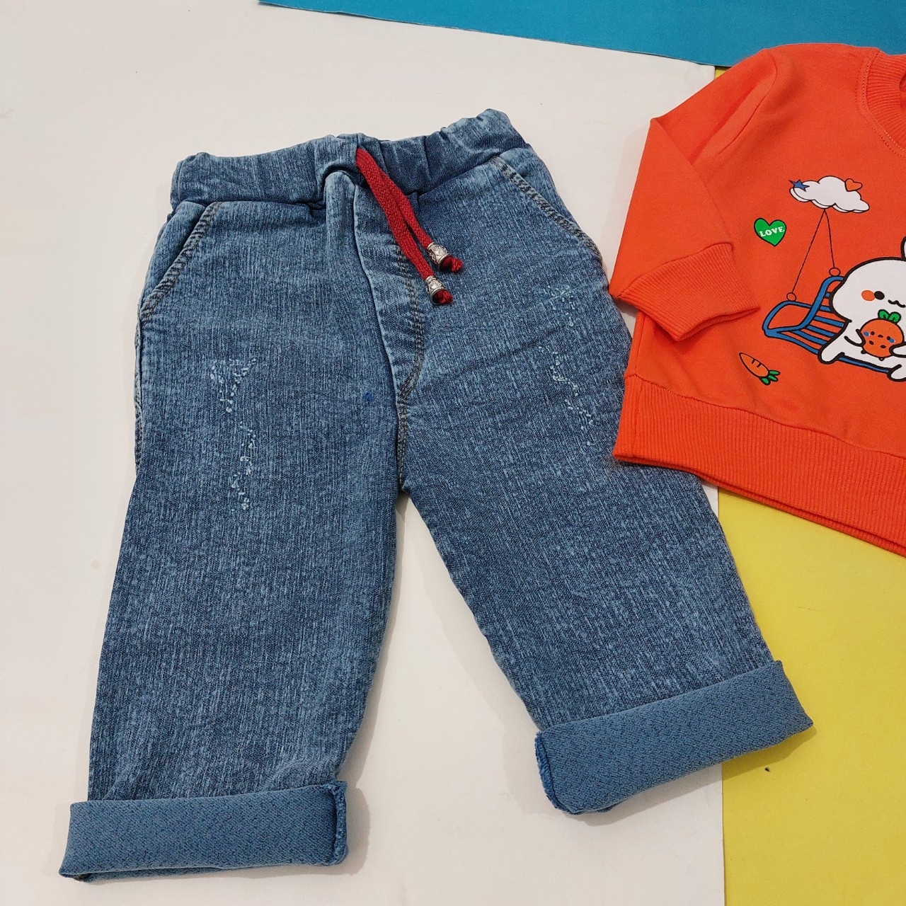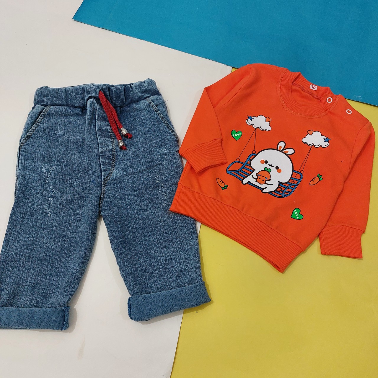 جنس بلوز نخ پنبه جنس شلوار جین کشی سایز ۳۰ : قد بلوز ۳۲ ، پهنا ۲۵ سانت قد شلوار ۴۲ ، فاق ۲۱ سانت سایز ۳۵ : قد بلوز ۳۸ ، پهنا ۲۸ سانت قد شلوار ۵۰ ، فاق ۲۲ سانت