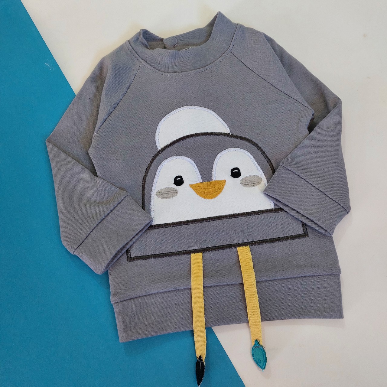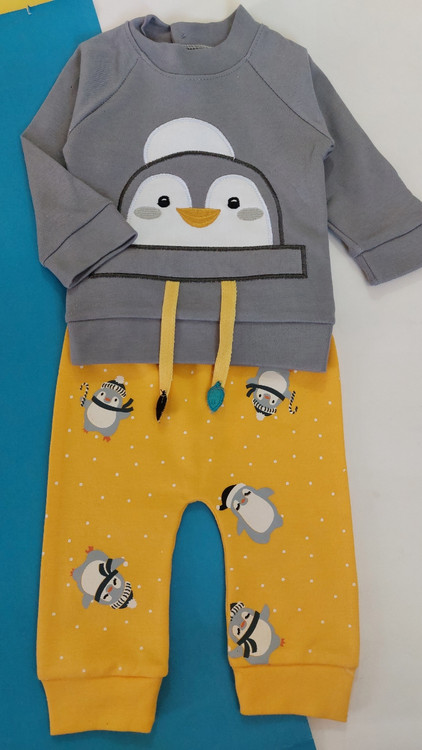 بلوز شلوار نخ پنبه پنگوئن طوسی زرد نونا
