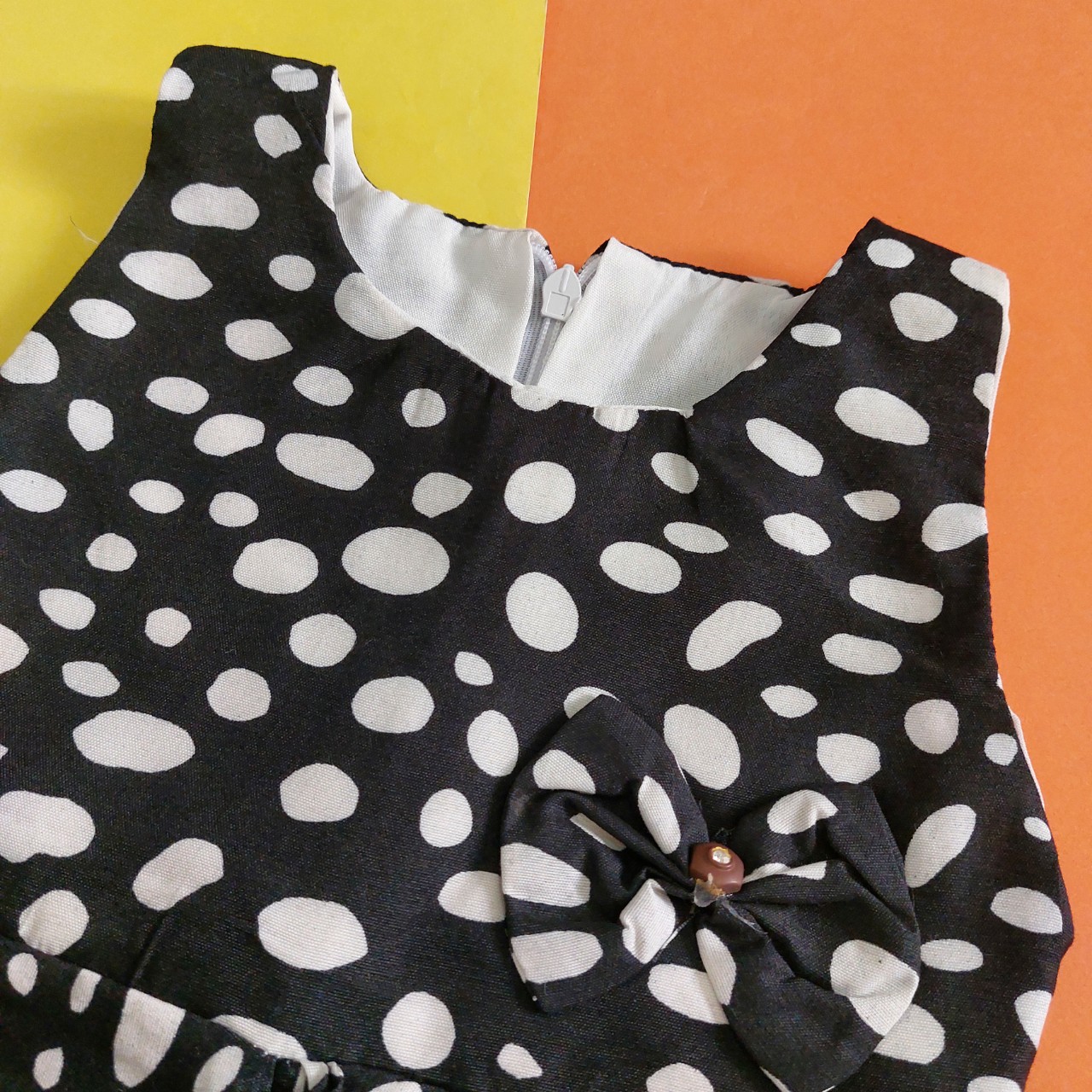 سارافون مشکی با خال های سفید خنک و تابستانه داخل آستری نخی دوخت شده سایز 1 : قد سارافون 43 سانت ، پهنا کمر 25 سانت سایز 2 : قد سارافون 47 سانت ، پهنا کمر 27 سانت