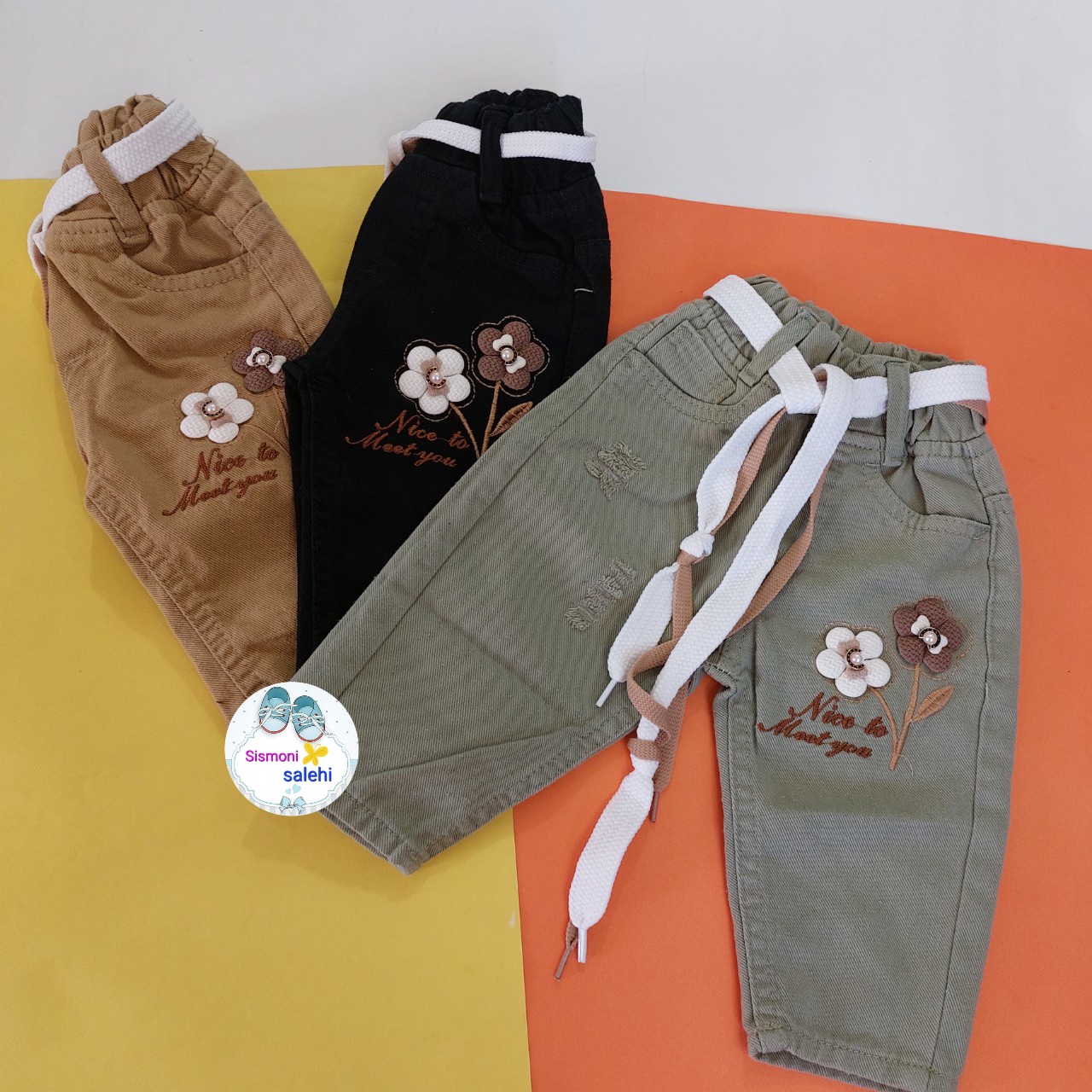 شلوار کتان دخترانه طرح گل برجسته راتین کیدز
